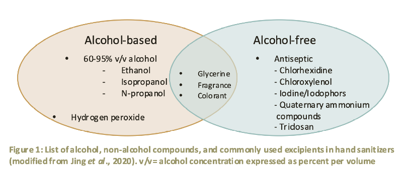 The current pandemic situation that we are all experiencing has increased exponentially the need and production of hand sanitizers and disinfectants. There are mainly two types of hand sanitizers in the market: alcohol-based (ABHS) and alcohol-free (Fig.1)1.